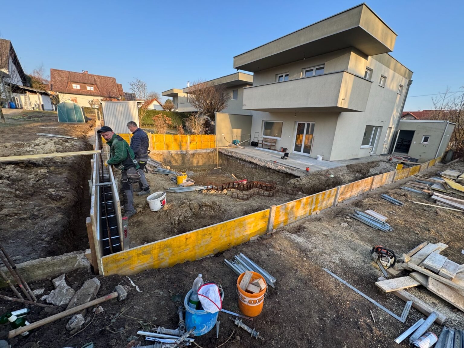 Gartenmauer und Pool / Wels